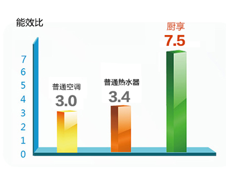 普通空調(diào)的能效比約為3.0,普通熱水器的能效比約為3.4,而廚房享的綜合能效比高達(dá)7.5,遠(yuǎn)高于空調(diào)和熱水器的能效之和,讓您更省電。 |