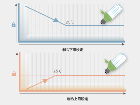 通過線控器設定制冷下限溫度與制熱上限溫度,節(jié)約能源避免用電浪費。 |